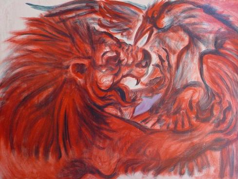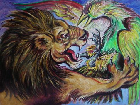 THE LION AND THE BIRD THIS PAINTING IS NOW FEATURED ON THE NEW DVD "OIL PAINTING WITH CALCITE SUN OIL" READ THE ENTIRE PROCEDURE ON HOW I PAINTED THIS LION PAINTING. IT IS IN MY NEW BOOK "SOLVENT FREE OIL PAINTING Painting with the Old Masters' Van Eyck Secret Medium" |