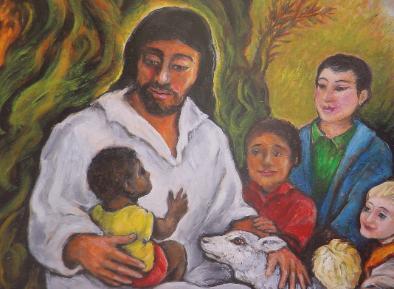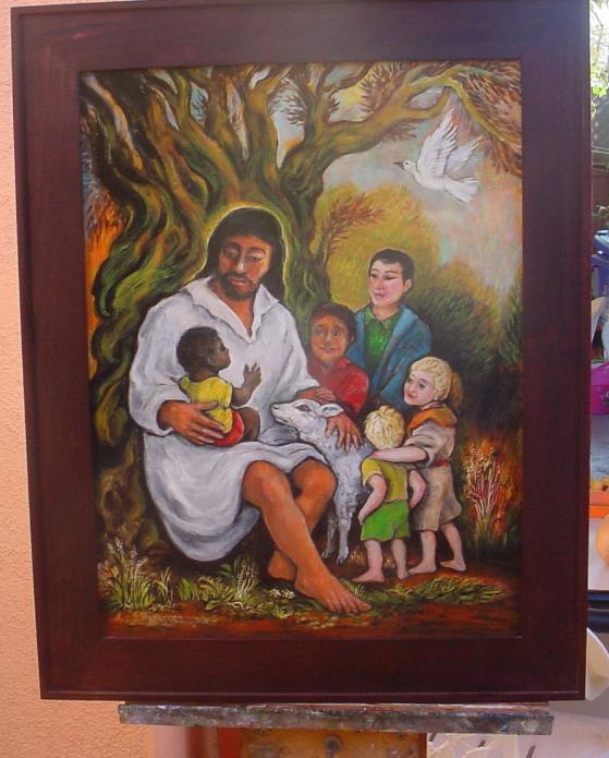 CHRIST WITH THE CHILDREN CSO OIL PAINT AND EMULSIONS 1/2 INCH BIRCH WOOD PANEL . 24 INCHES X 18 INCHES PRICE $1500 CONTACT velapress@aol.com |