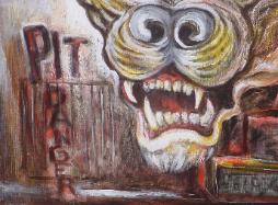 "SHORTY" Oil on Birch plywood, 30 X 24" , 2006, with detail. This painting evolved through five overpaint sessions. Each time, a Viscous Emulsion was used as the 'oil out' to insure adhesion of the new paint layer. And, to allow firm clear thick and thin paint that stayed exactly as I placed it. Blending was easily done when needed. |