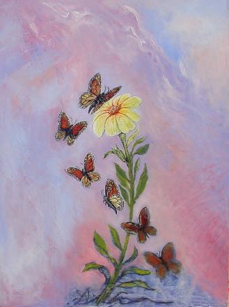 MARIPOSAS HERMOSAS [ BEAUTIFUL BUTTERFLYS] 30" X 24" OIL ON WOOD DATE: August 2012 PRICE: $1500- Please see additional photos on the main page |