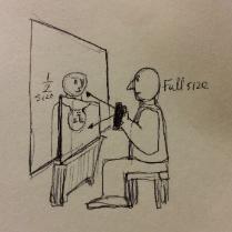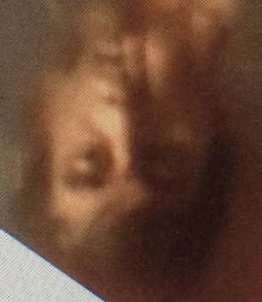 I have made it a point that the average height of a mature person's head, is about 9 inches tall. Please see the photo where the ruler is held alongside and next to my head I have also said that when a person looks into a FLAT MIRROR, at arms length, the reflection of the head is reduced to about half size. Please see the photo taken at arms length. |
