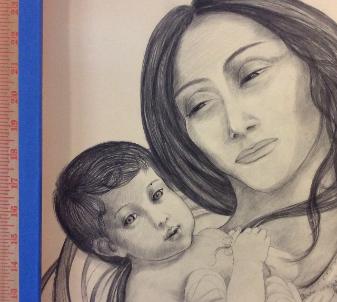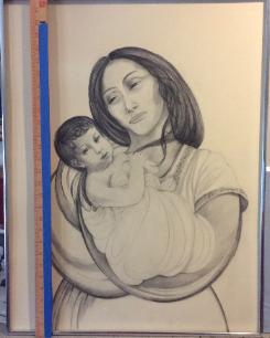 IN A LETTER, O'NEILL said he recognized Rembrandt's great drawing ability, but claimed... that Rembrandt could draw better WHEN HE USED A PROJECTION DEVICE. ..ONEILLS statement displays his ignorance of Rembrandt's STYLE of drawing. See my post below written by a highly respected Rembrandt scholar Jakob Rosenberg describing the great beauty of Rembrandt's drawings. I will repeat: I AM NO MATCH FOR REMBRANDT. Not in painting and not in drawing. I am a professional artist and I have painted since age 13 in 1957. The next two photos show that any competent professional artist can simply DREAM UP any object, and can create a drawing of it. IN THESE PHOTOS, I drew the mother and child from pure imagination. I USED NO MODELS for this original drawing I made in 1978. |