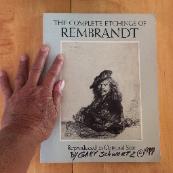GARY SCHWARTZ' book reporoduces all of Rembrandt's etchings in ACTUAL SIZE! I photographed some with my fingers to show actual sizes and scale. |