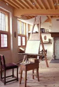 O'NEILL SENT ME this drawing made by Rembrandt, ( on your lower left side) showing how Rembrandt would manipulate the LIGHT FROM THE UPPER WINDOW, by use of some curtains ( visible and attached to the ceiling). Yes, it is true that Rembtrandt was a master at controlling light to illuminate his subjects he would paint. HOWEVER, O'Neill made the claim that THE EASEL IS IN SHADOW! A concave mirror an only project an image ONTO A SHADED SURFACE IN SHADOW. This, O'Neill claimed it was "suggestive" that rembrandt was PROJECTING the image of the nude model onto his canvas in order to trace it. In the 20th century, Rembrandt's home in Amsterdam, was REFURBISHED and turned into a museum { Now called The Rembrandthuis) and this drawing was used as a guide on placement of Rembrandt's easel, chair for the model, and the curtains on the upper windows. Here below are photos of Rembrandt's actual studio as seen today. It shows the curtains for the windows, the easel, and the chair for the nude model. NOTICE HOW REMBRANDT'S EASEL IS FULLY ILLUMINATED. |