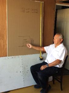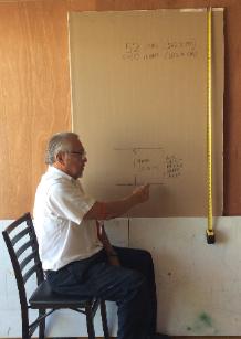 THE NEXT TWO PHOTOS COMPARE PLACEMENT OF THE CANVAS Rembrandt could easily change the position of the canvas to be on his right side or on his left side. The only requirement for the FRICK painting is that the light illuminate the left side of Rembrandt's face. Rembrandt was right handed. IF the canvas was placed on his left side, his right arm would have to cross over his body to trace the image. This means his face must be closer to the canvas. IF the canvas was placed on his right side, his arm had more room to extend. My extended right arm is about 26 inches [ 66 centimeters]. Shortly, I will discuss the OPTICS LAW that O'Neill cites is needed in order to project a LIFE SIZED image of a head that is 9" tall. |